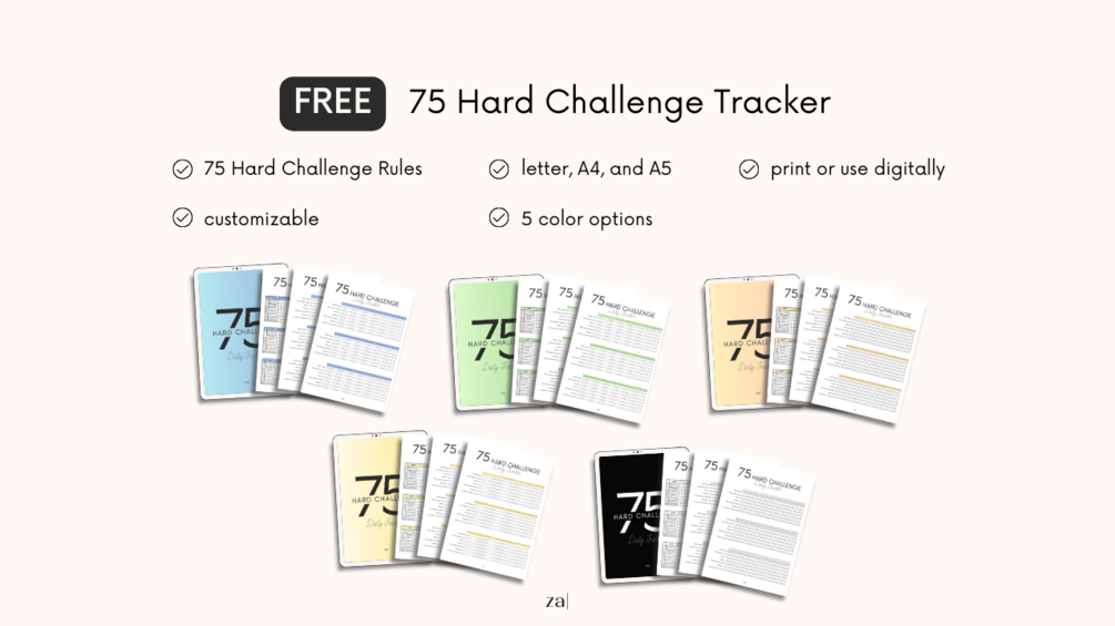 - Five colorways to choose from: We believe in the power of visual motivation. That's why we offer the 75 Hard Challenge tracker in five vibrant color options. Find the color that speaks to you and sparks that fire within.